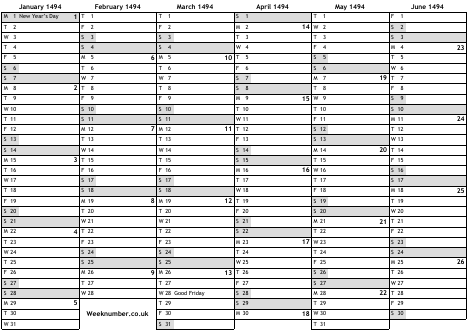 1494 calendar