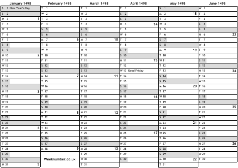 1498 calendar