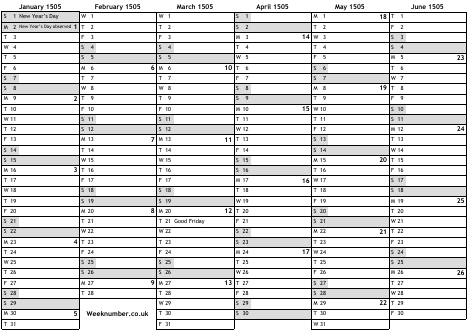 1505 calendar