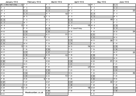 1512 calendar