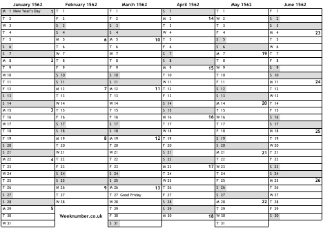 1562 calendar