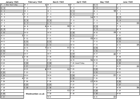 1565 calendar