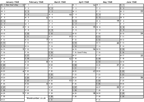 1568 calendar