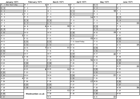 1571 calendar