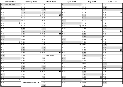 1573 calendar