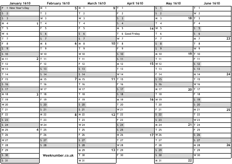 1610 calendar