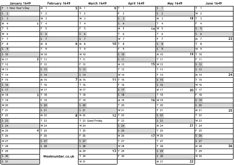 1649 calendar