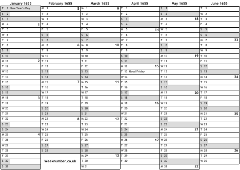 1655 calendar