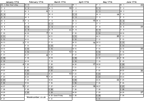 1716 calendar