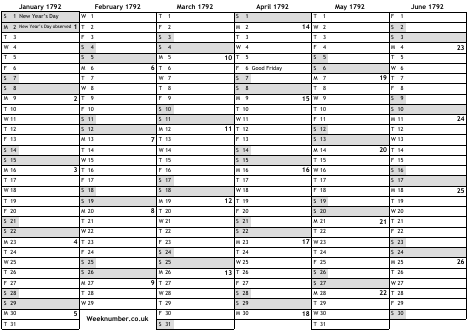 1792 calendar