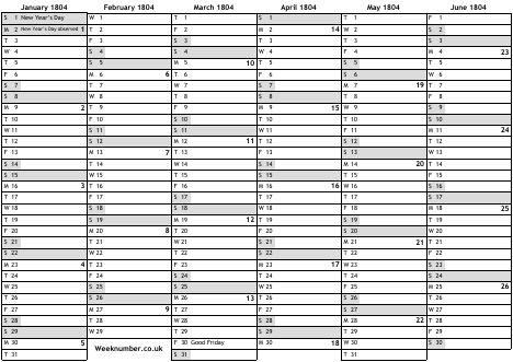 1804 calendar