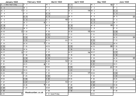 1820 calendar