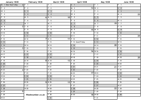 1838 calendar