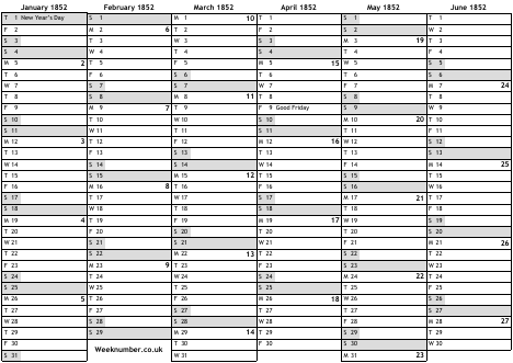 1852 calendar