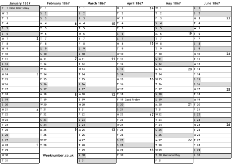 1867 calendar