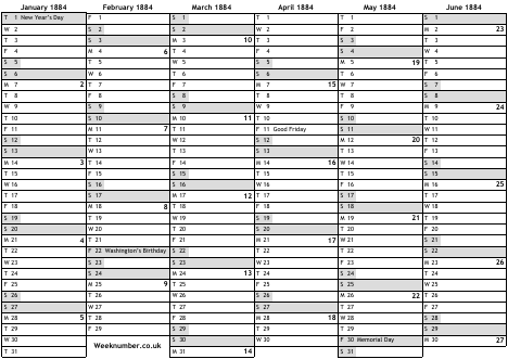 1884 calendar
