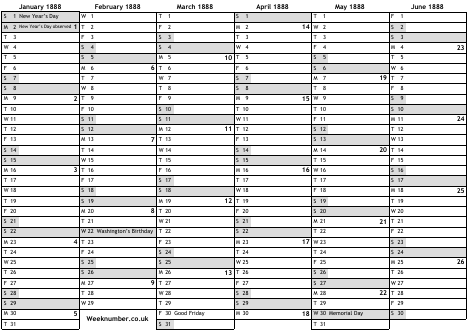 1888 calendar