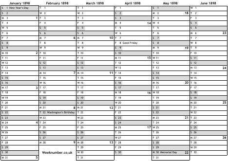 1898 calendar
