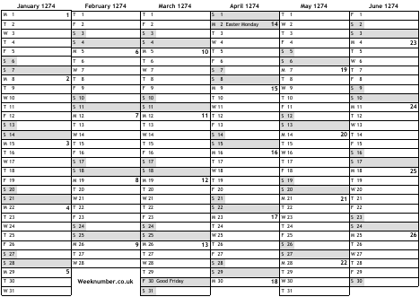 1274 calendar