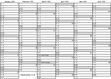 1353 calendar