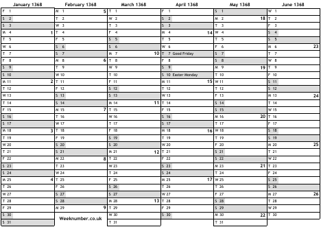 1368 calendar