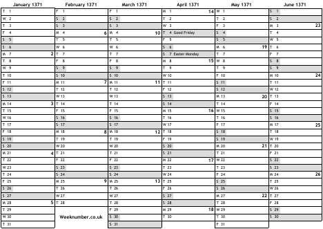 1371 calendar