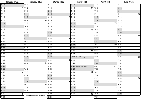 1432 calendar