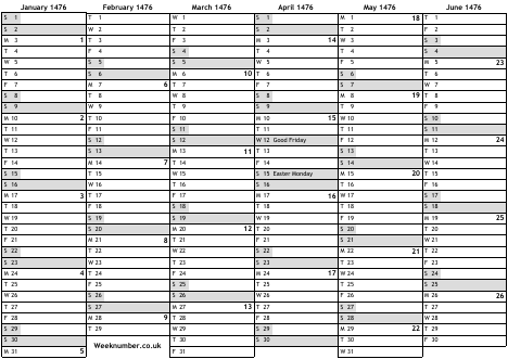 1476 calendar