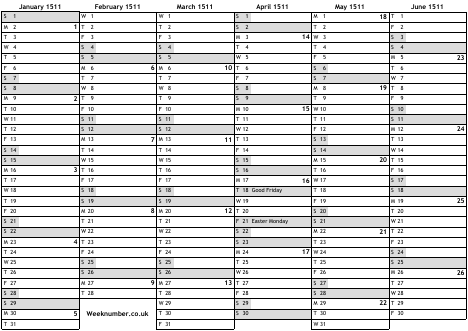 1511 calendar