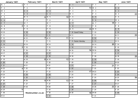 1601 calendar
