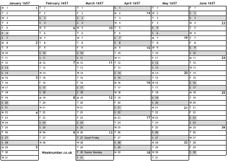 1657 calendar