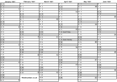 1661 calendar