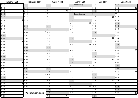 1681 calendar