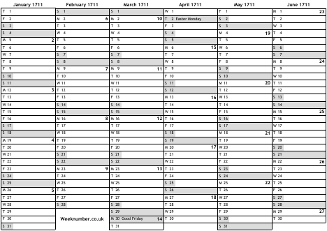 1711 calendar