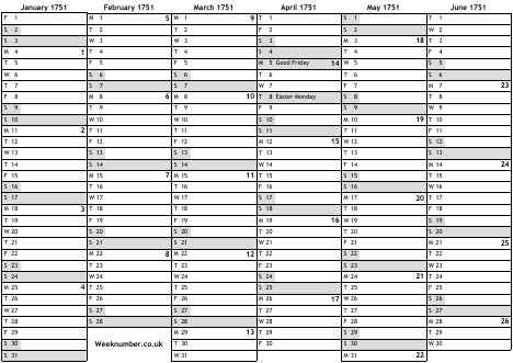 1751 calendar