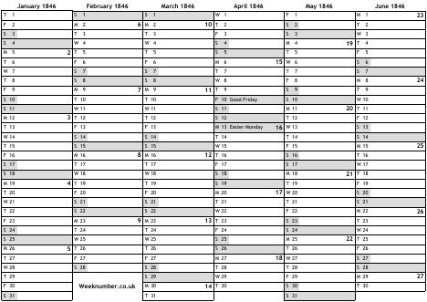 1846 calendar