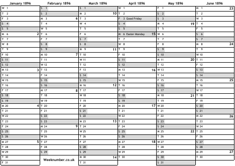 1896 calendar